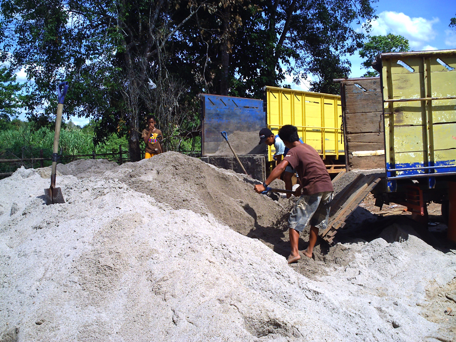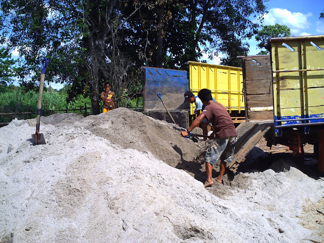 Penimbunan Pasir di Desa Seri Kembang yang ditambang dari Muara Sungai Randu Desa Nagasari